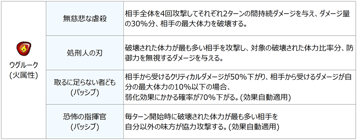 今回のパッチノートではウグルークのスキルをご紹介しましょう。