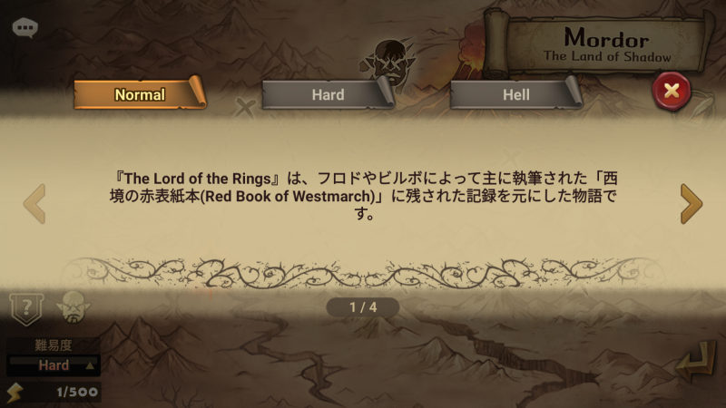 原作小説『The Lord of the Rings』の主な舞台であるモルドールを、Normal/Hard/Hellの難易度に応じて「黒門」、「滅びの山」、「バラド=ドゥール」と段階別にプレイできるように構成しました。