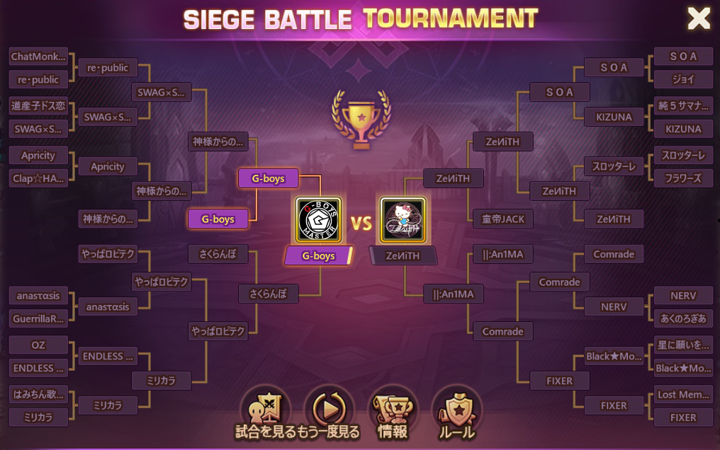 トーナメント進出全32ギルド