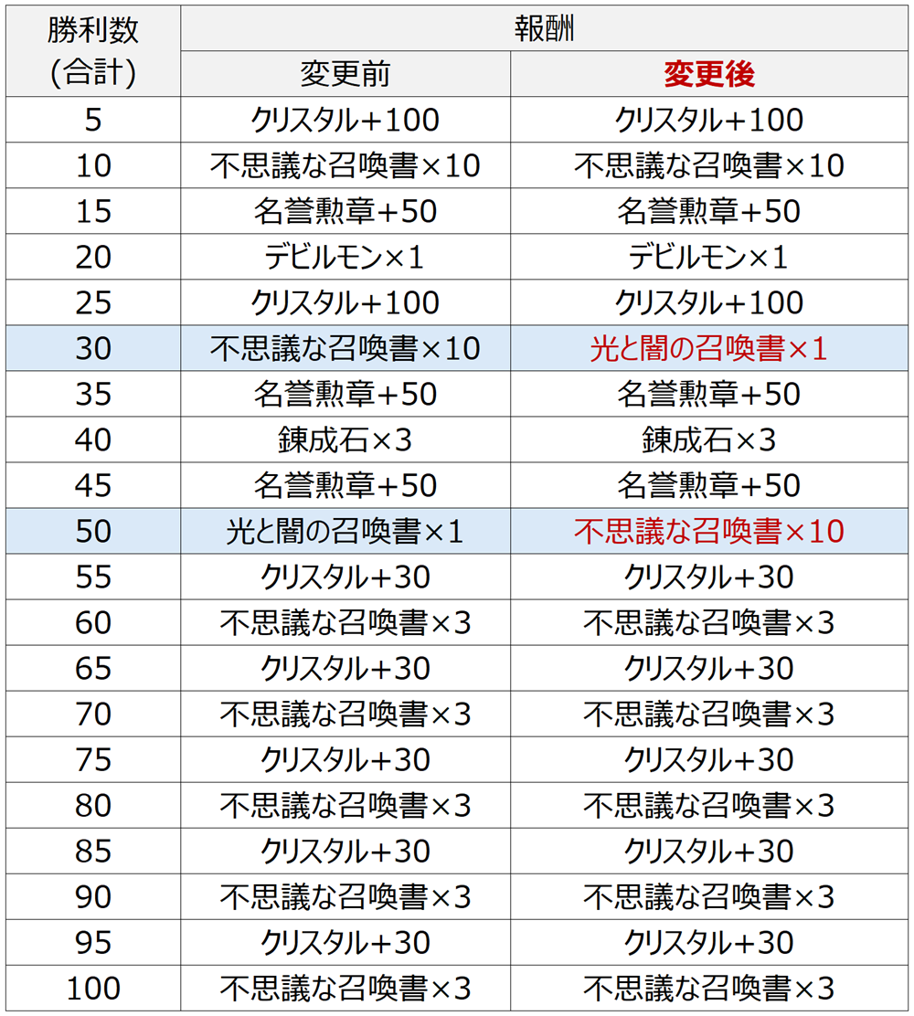 ▶ 【チャレンジバトル】 合計勝利報酬の一部の区間が調整されます。