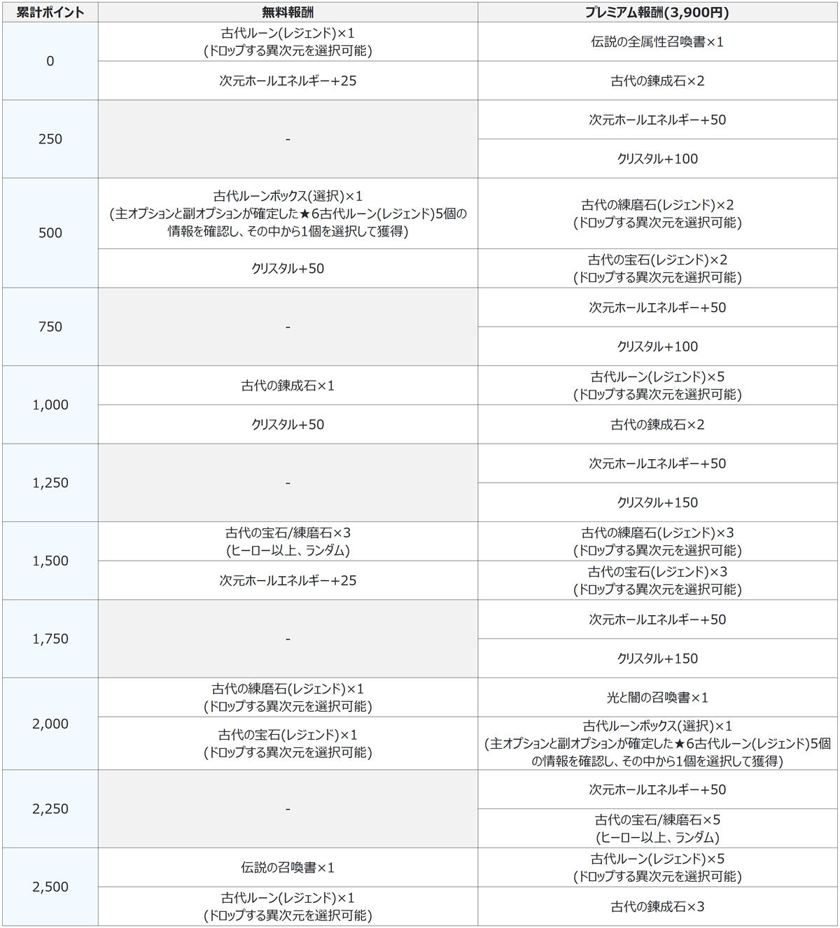 – 1ヶ月間に消費した次元ホールエネルギーの量に応じてパスポイントを獲得し、合計獲得ポイントに応じて各区間の報酬をすぐに獲得できます。