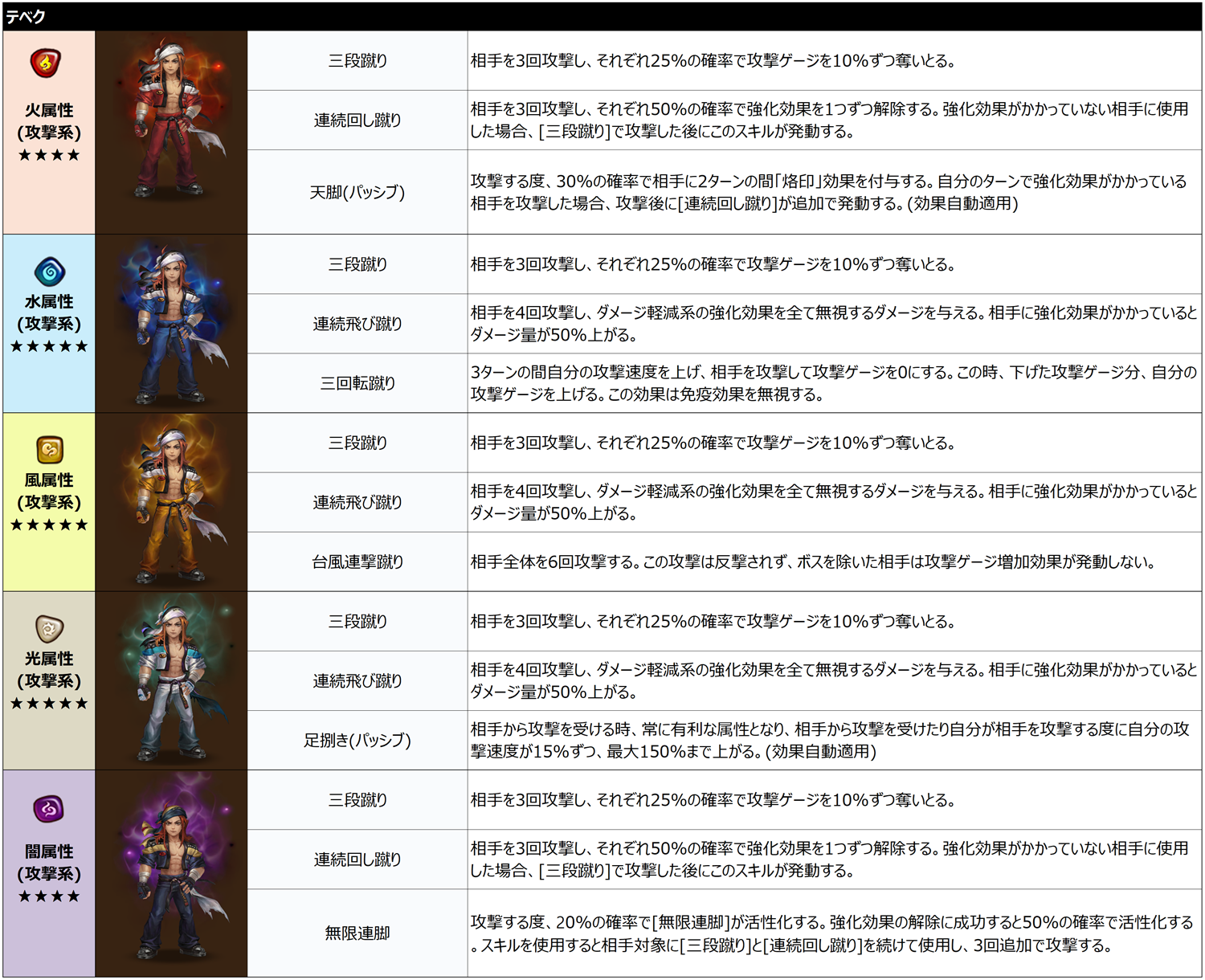 – コラボオリジナルモンスターをより分かりやすく認識できるように、5属性の覚醒名のうち一つが選ばれ、全属性に同じ名称が適用されます。