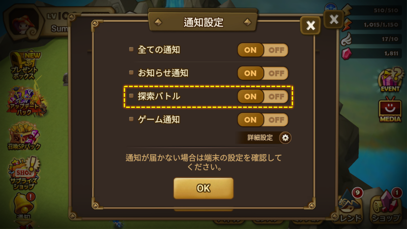 – 【ゲーム設定 ⇒ 通知】で探索バトル通知設定を変更できるように改善されます。