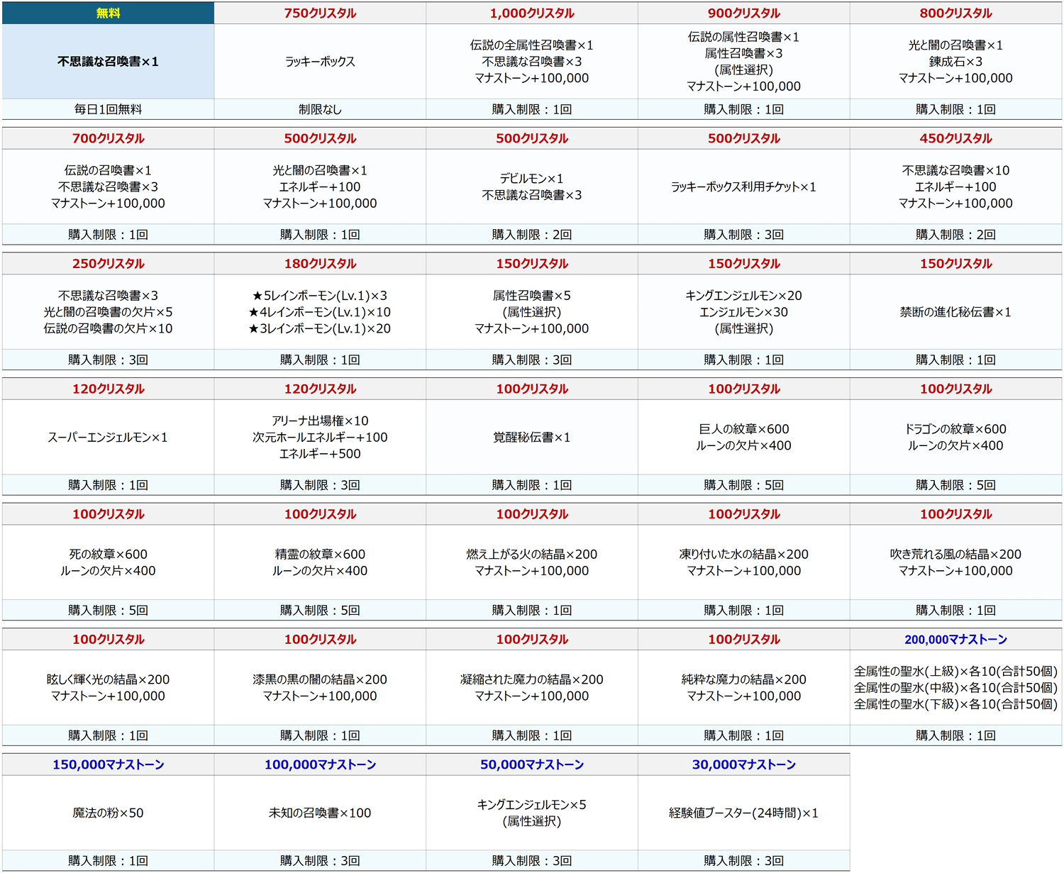 ※デイリー不思議な召喚書プレゼントの受取履歴は各サーバー時間を基準として0:00にリセットされます。