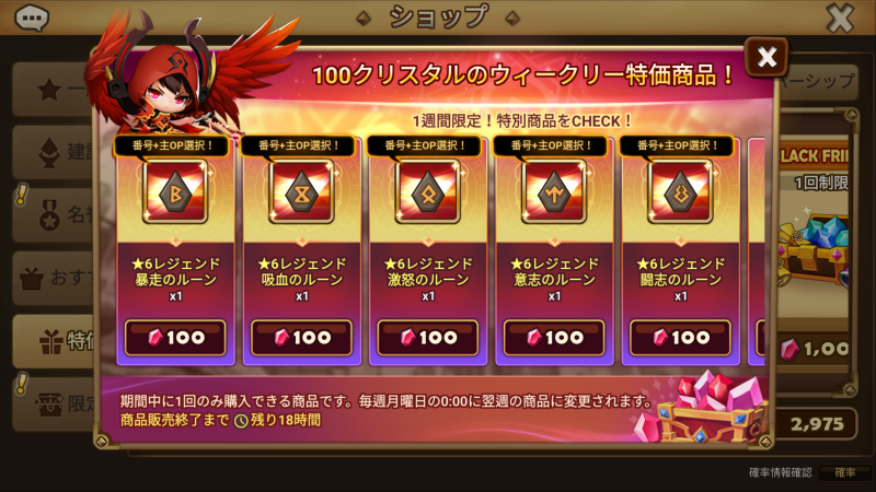 ※ウィークリー商品として販売される★6レジェンドルーン商品を購入してプレゼントボックスで受け取ると、ルーンの番号と主オプションを選択できます。